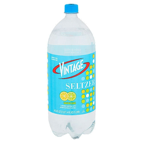Vintage® Lemon Lime Seltzer. Sodium free. Calorie free. Flavored seltzer with other natural flavors. 67.6 fl oz (2 qt 3.6 fl oz) 2 liter. Contains 0% juice. All rights reserved. CA cash refund. Questions or comments Call 1-888-260-3776. ©2012 Cott Beverages Inc.