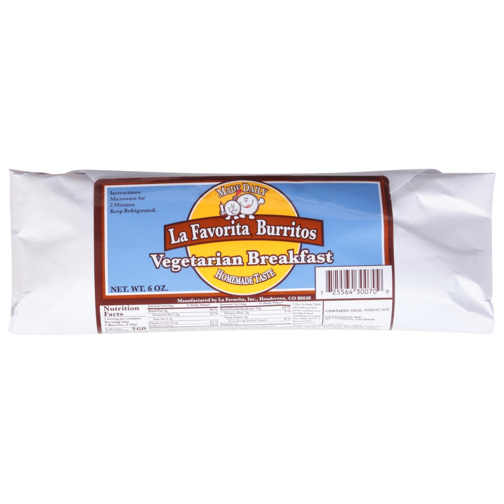- The manufacturer of Veg Bfast Burrito is La Favorita.