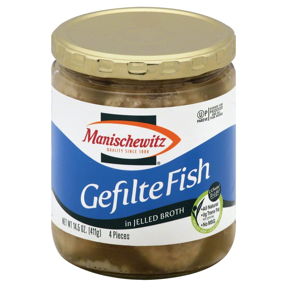 - The manufacturer of Gefilte Fish in Jelled Broth is Manischewitz.