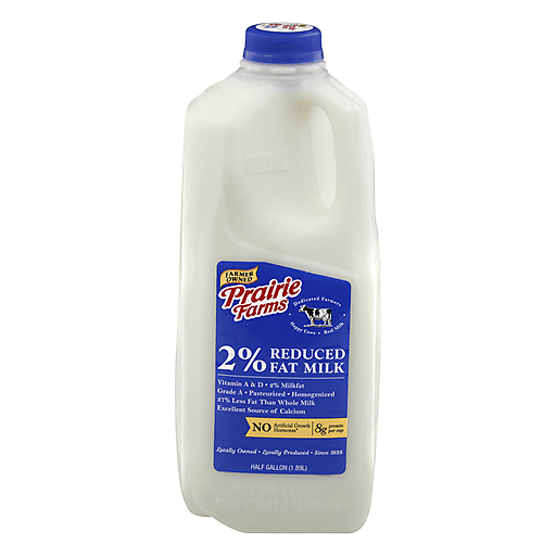 Prairie Farms 2% Milk is nutrient packed with protein, calcium and Vitamin A and D and contains 2% milkfat. 8g protein per cup. Pasteurized. Homogenized. 97% less fat than whole milk. No artificial growth hormones. Illinois farmer owned and produced since 1938.