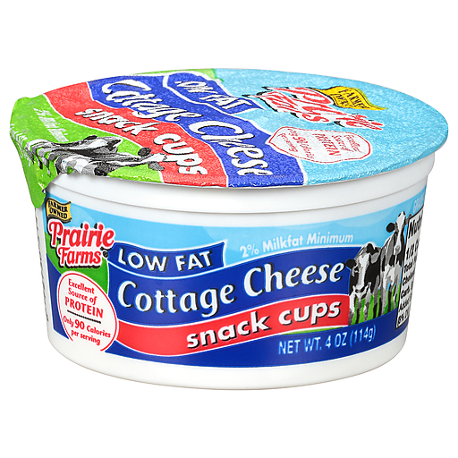 - The manufacturer of Low Fat Cottage Cheese Snack Cups is Prairie Farms.