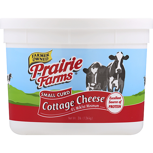 - The manufacturer of Small Curd Cottage Cheese is Prairie Farms.