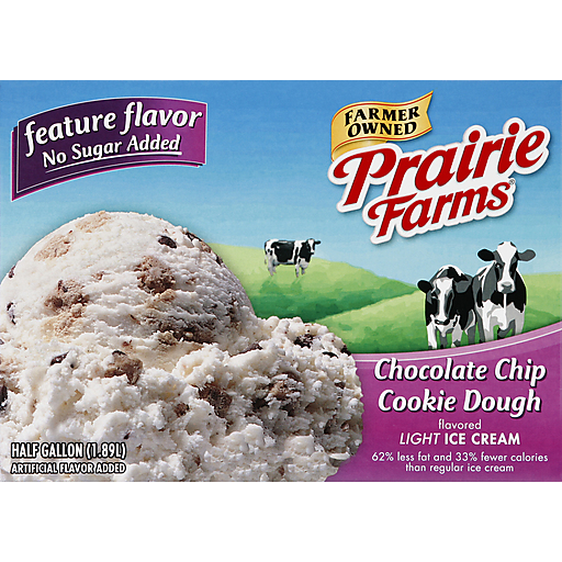 - The manufacturer of Flavored Light Ice Cream, Chocolate Chip Cookie Dough is Prairie Farms.