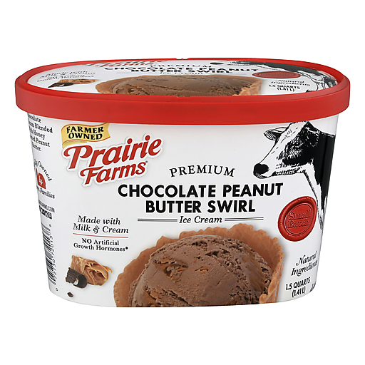 Chocolate ice cream swirled through with real creamy peanut butter. Premium small batch ice cream made with real milk and cream. No gluten ingredients. No antibiotics or artificial growth hormones. No artificial colors or flavors. No high-fructose corn syrup. Naturally sweetened with sugar. Illinois farmer owned and produced since 1938.