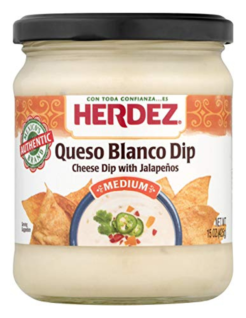 Dip into smooth, rich flavor and endless possibilities with HERDEZ Queso Blanco Dip. Includes 1, 15-ounce jar of creamy queso cheese dip with jalapenos. The cheesy dip adds a creamy kick of flavor to your favorite recipes; vegetable wraps, beef enchiladas, taco salads, and nachos to name a few. It's an ideal shelf-stable, pantry staple that makes a tasty sauce or topping for snacks or entrees, and pairs perfectly with chips and guacamole or salsa. Serve it for meals on special occasions, taco night or any day of the week. The HERDEZ® brand is the No.1 selling brand of salsa in Mexico. All trademarks, logos, and images are owned by Hormel Foods Corporation, its subsidiaries, and affiliates. Copyright MegaMex Foods, LLC.