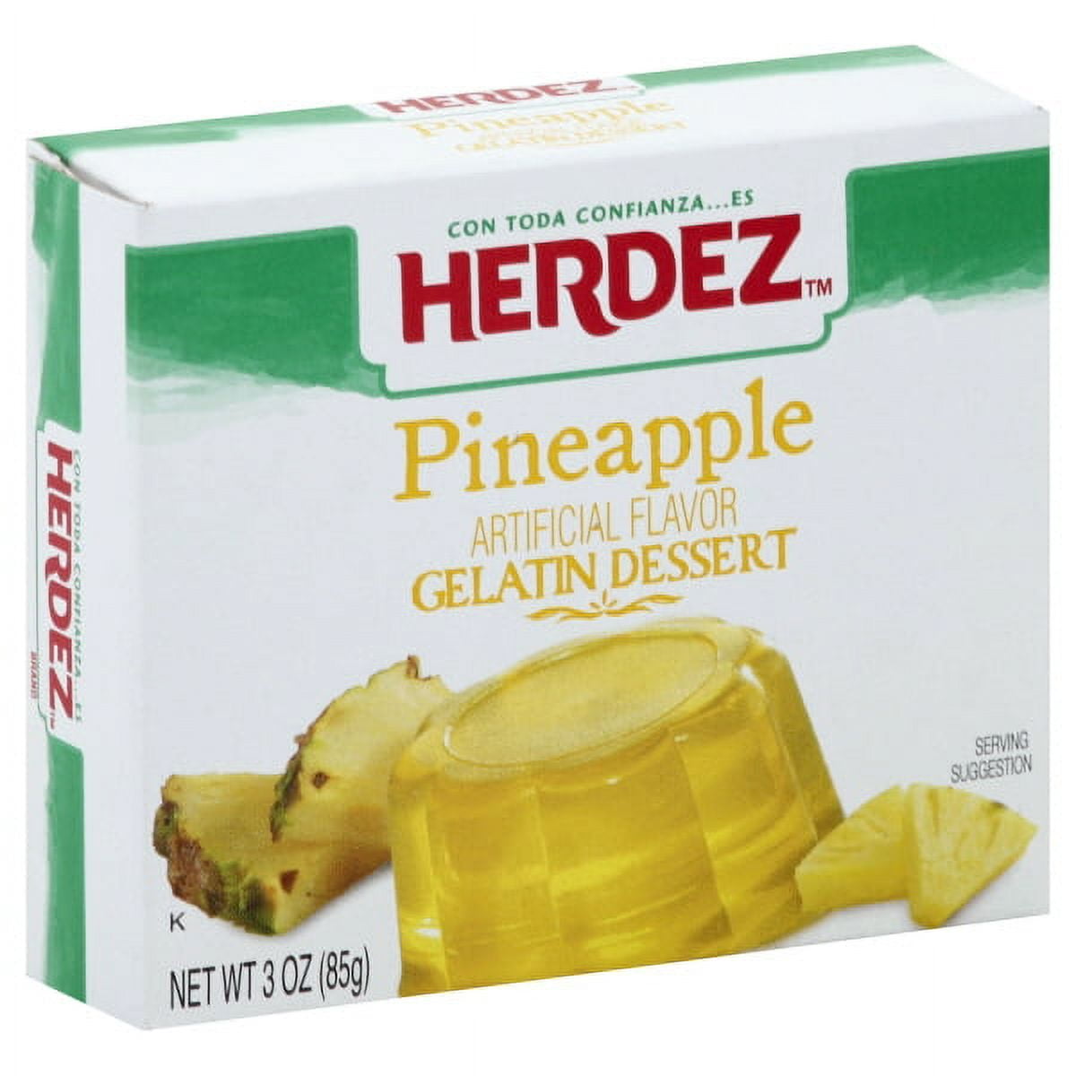 Herdez Pineapple Gelatin Dessert Mix,Sugar, Gelatin, Contains 2% Or Less Of Adipic Acid (for Tartness), Sodium Citrate (controls Acidity), Fumaric Acid (for Tartness), Gum Arabic, Salt, Artificial Flavors, Sucralose, Yellow 5, Yellow 6Quick & easy prep Kosher.