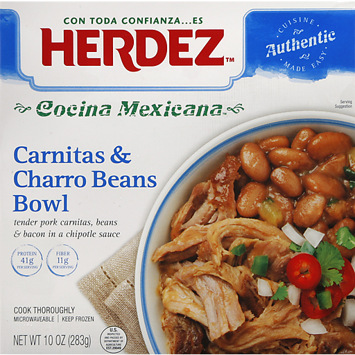 - The product category for Herdez, Cocina Mexicana, Carnitas & Charro Beans Bowl is Bowls.
