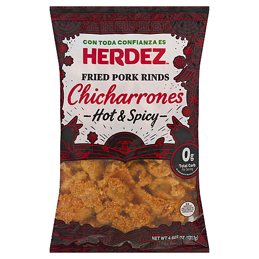 - The manufacturer of Hot & Spicy Fried Pork Rinds Chicharrones, Hot & Spicy is Herdez.