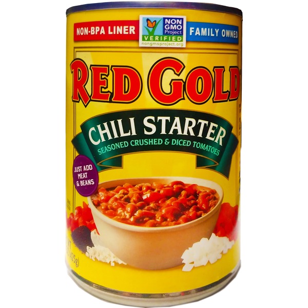 - The manufacturer of Chili Starter Seasoned Crushed & Diced Tomatoes, Chili Starter is Red Gold.