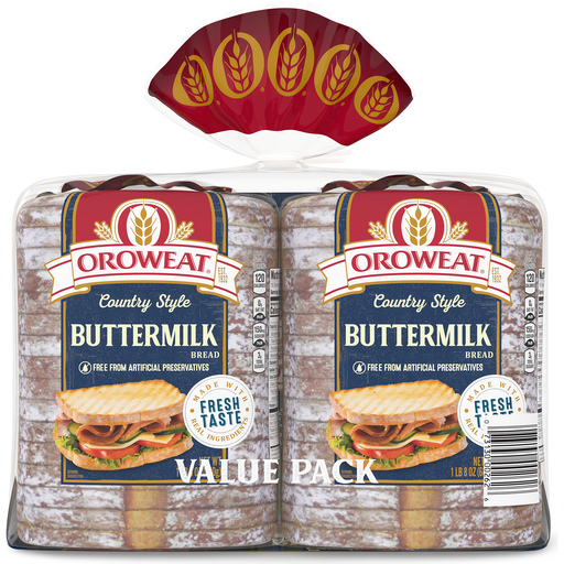 Oroweat Country Buttermilk bread has a rich taste with a subtle hint of sweetness and is made with real buttermilk. Oroweat bread has no high fructose corn syrup and no artificial preservatives, colors or flavors.