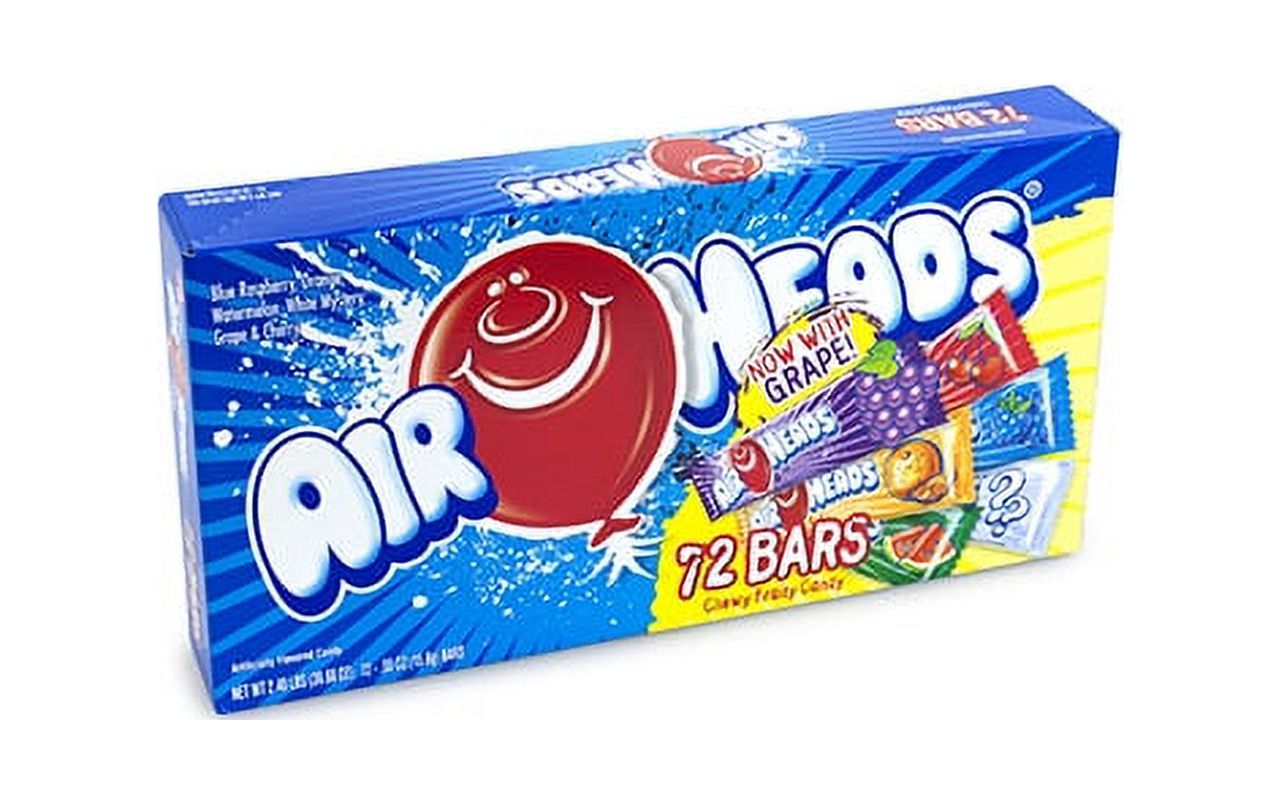 This Airheads assortment includes individually wrapped chewy taffies in flavors including cherry, green apple, strawberry, blue raspberry, White Mystery and watermelon. With 72 bars in this bulk candy box, there is plenty to fill the piñata or candy buffet at your next party or celebration.