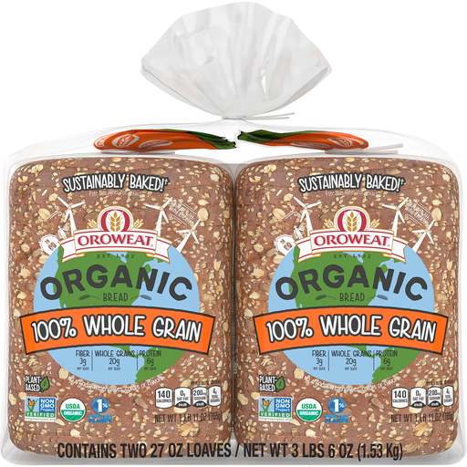 - The manufacturer of 100% Whole Grain Organic Bread, 100% Whole Grain is Oroweat.
