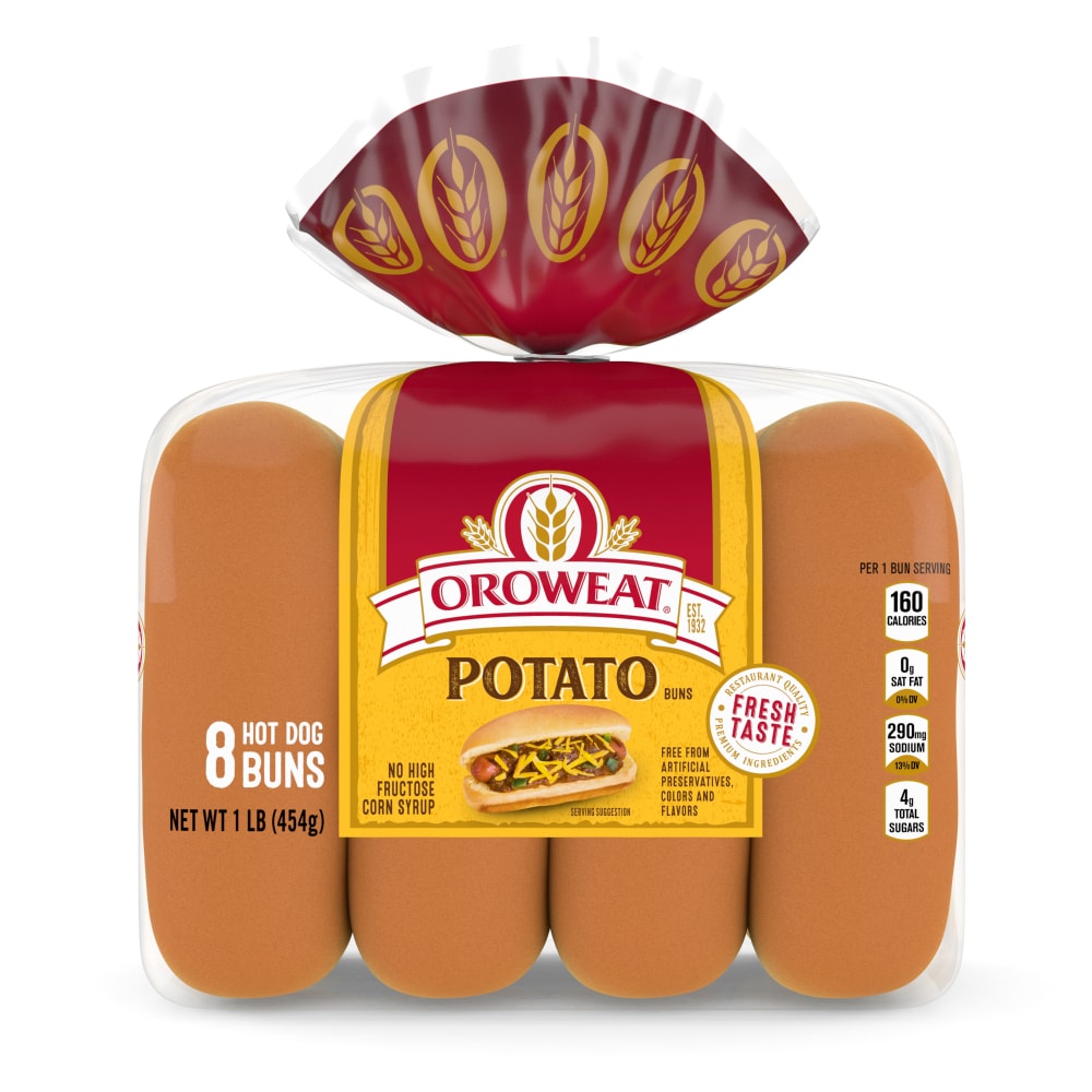 - The manufacturer of Potato Hot Dog Buns, Potato is Oroweat.