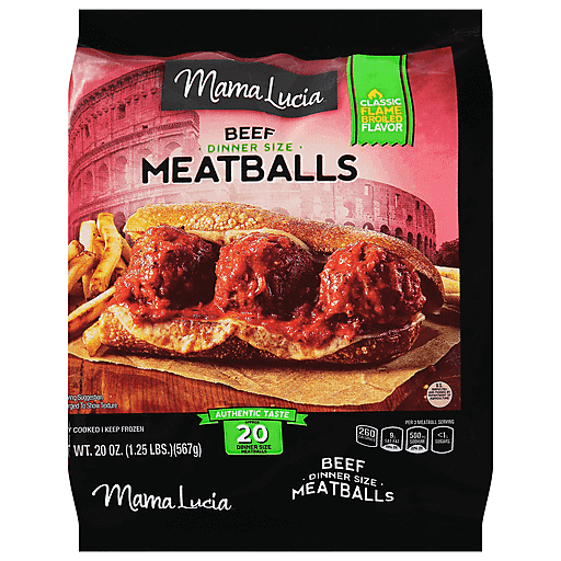 - The manufacturer of Beef Dinner Size Meatballs is Mama Lucia.