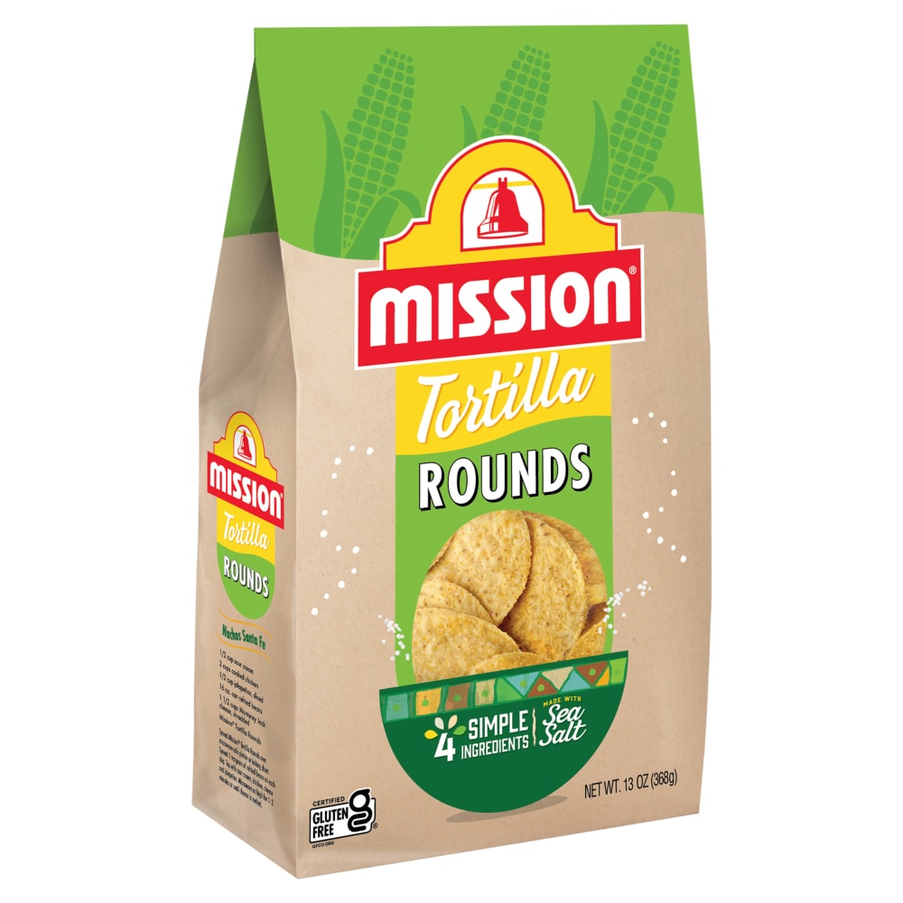 One 13-ounce bag of Mission Rounds Tortilla Chips. A certified gluten-free snack that's sure to transport you to an authentic Mexican restaurant experience with every crunch. Made with only four simple ingredients and great flavor. Each chip is perfectly sprinkled with sea salt. Our chips contain no artificial flavors, colors, or preservatives.