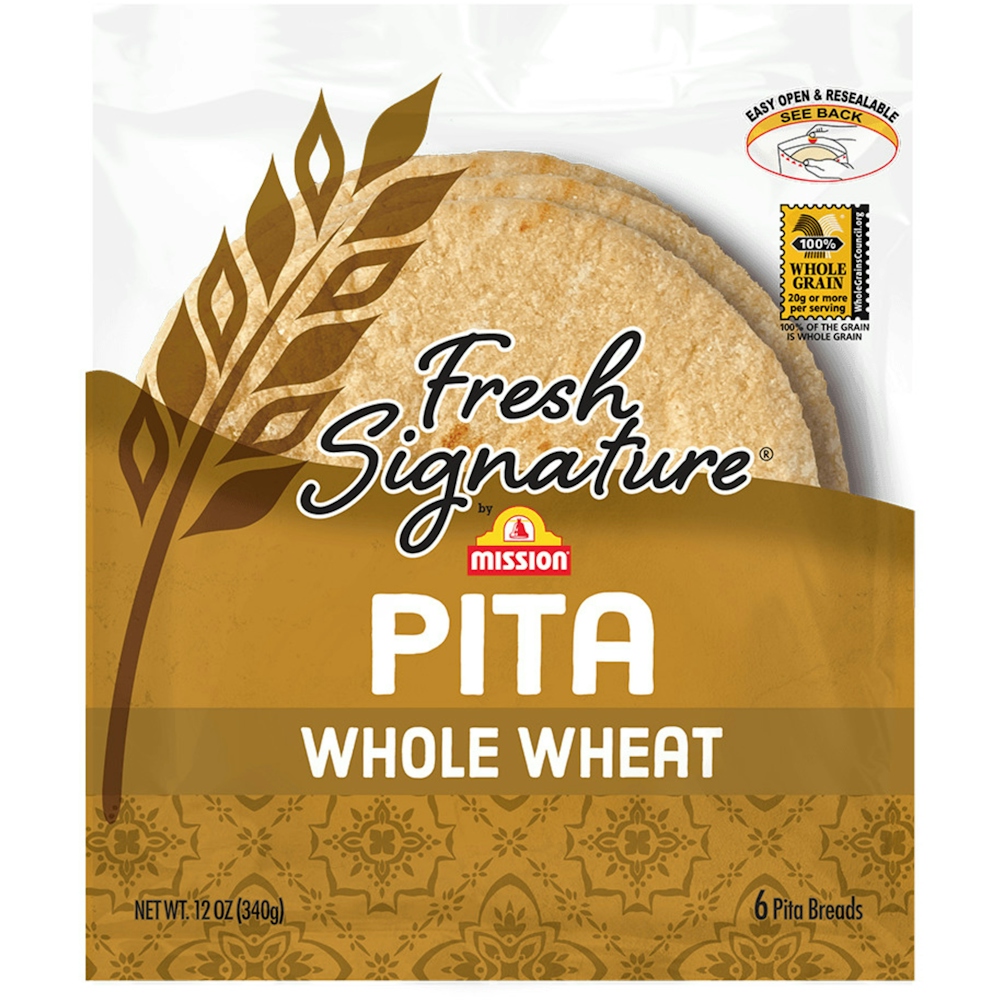 Let our Fresh Signature by Mission line fuel your creativity in the kitchen with globally inspired flatbreads. Our delicious Fresh Signature Whole Wheat Pita is baked to perfection and made from quality Mission ingredients. Just stuff them with your favorite fillings to create tasty and satisfying recipes you can't resist.