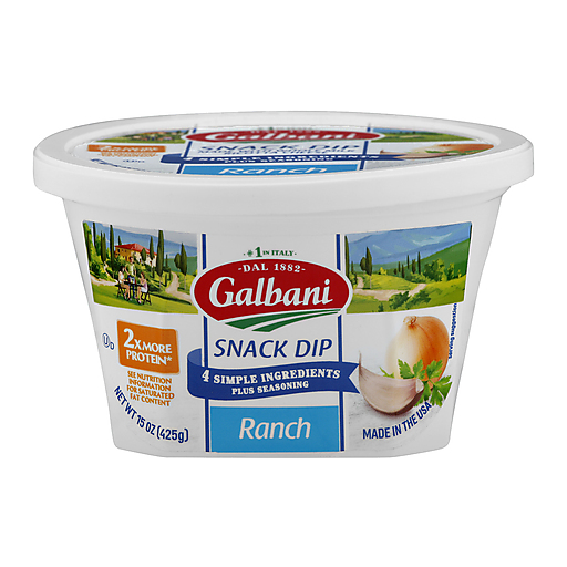 2x more protein (2x more protein than the leading ranch dip ( 2 g vs 1 g per serving). See nutrition information for saturated fat content. Dal 1882. No. 1 in Italy. 4 simple ingredients plus seasoning. Made with whole milk ricotta cheese. galbanicheese.com. To learn more visit galbanicheese.com. Questions or comments? 1-877-522-8254. Made in the USA.