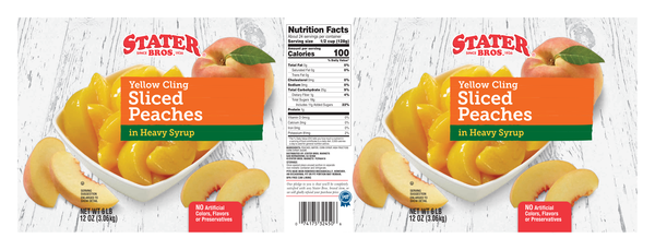 - The manufacturer of Yellow Cling Sliced Peaches in Heavy Syrup is Stater Bros.