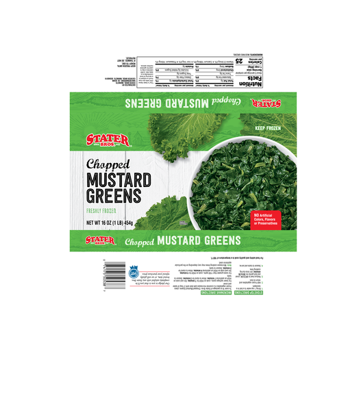 - The manufacturer of Freshly Frozen Chopped Mustard Greens is Stater Bros.