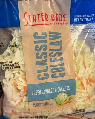 - The manufacturer of Classic Green Cabbage & Carrots Coleslaw, Classic is Stater Bros.