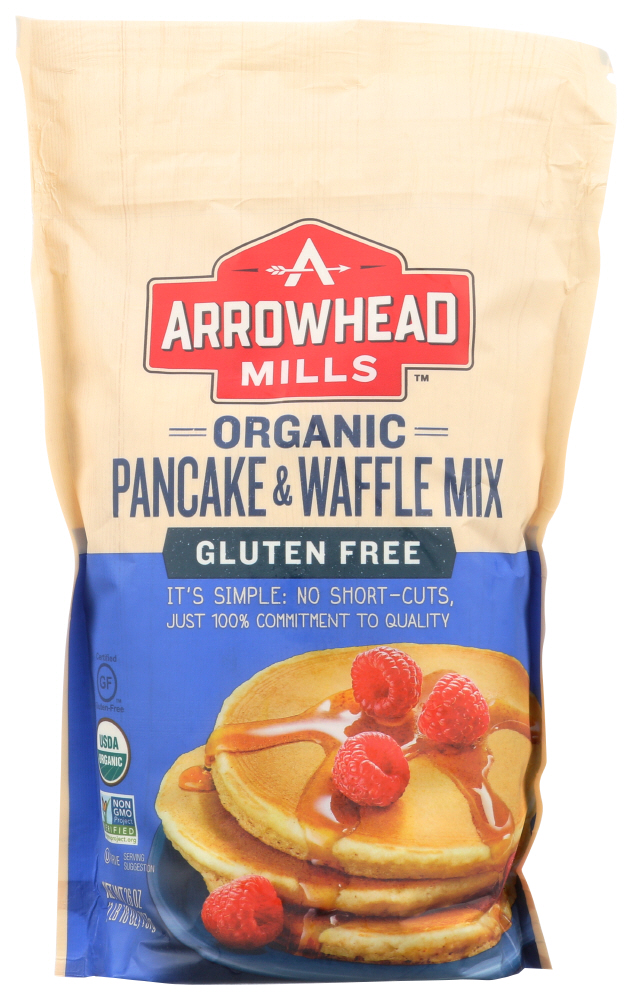 WHATEVER YOU ARE IN THE MOOD FOR IN THE MORNING, ARROWHEAD MILLS ORGANIC PANCAKE & WAFFLE MIX DELIVERS A DELICIOUS BREAKFAST. MAKING EITHER PANCAKES OR WAFFLES IS EASY WITH THIS READY TO USE MIX. IT’S ORGANIC, GLUTEN-FREE AND HAS NO GMO.