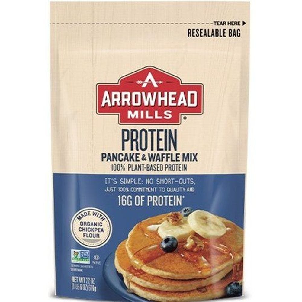 - The manufacturer of Protein Pancake & Waffle Mix is Arrowhead Mills.