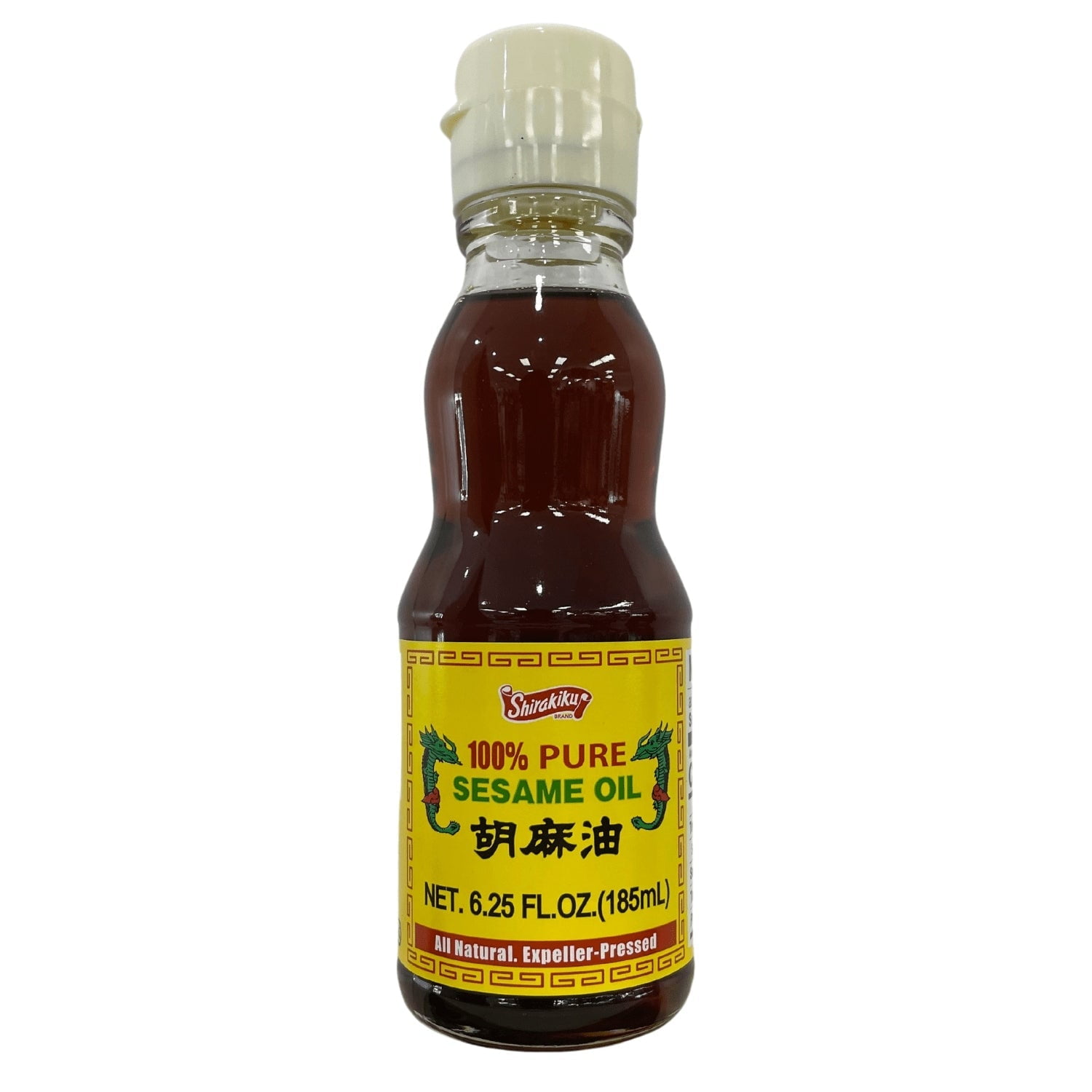 Shirakiku Brand The Premium 100% Pure Sesame Oil (Huile De Sesame) in 6.2 fl oz (185ml) bottle. Only uses premium sesame seeds for its rich rich aroma and taste. Can be used for stir fries, barbecue, soup, salad and/or as flavoring for any meals. Product of Taiwan.