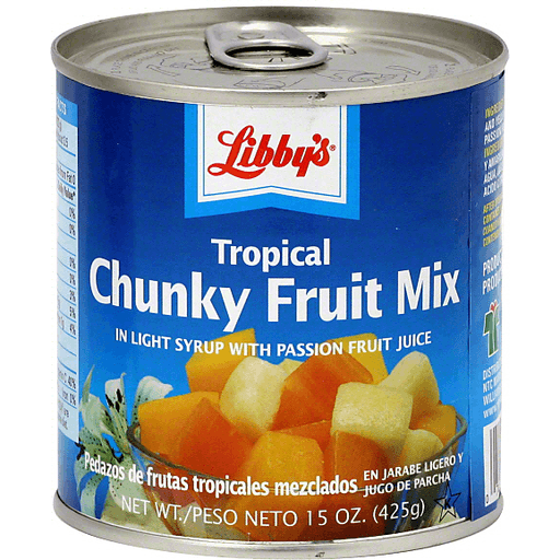 - The manufacturer of Tropical Chunky Fruit Mix in Light Syrup & Passion Fruit Juice is Libby's.