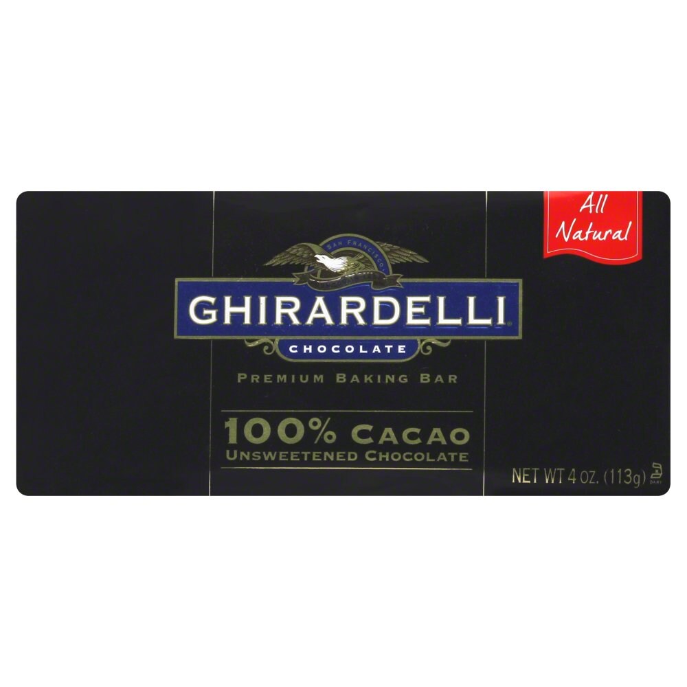 100% cacao. Premium baking bar. All natural. The luxuriously deep flavor and smooth texture of Ghirardelli Premium Baking Chocolate delivers the ultimate chocolate indulgence. We hand-select the world's finest cocoa beans and roast them to perfection, then blend the purest ingredients to achieve our award-winning chocolate.