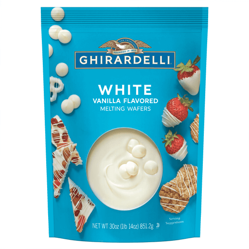 Inspire your inner candy maker and create impressive yet easy dipped treats with Ghirardelli White Vanilla Flavored Melting Wafers. These easy-to-use Ghirardelli melting wafers offer consistent results with no tempering required. Simply melt, dip, chill and enjoy. Make everything from truffles to dipped strawberries and covered pretzels in no time with a smooth-as-silk texture and lustrous sheen. Sweet vanilla flavor highlights your dipped treats and candies. This melting candy is made with high-quality ingredients to create delicious treats. Ghirardelli candy melts are kosher certified. Elevate your baking from great to extraordinary with Ghirardelli baking supplies. Ghirardelli makes life a bite better.