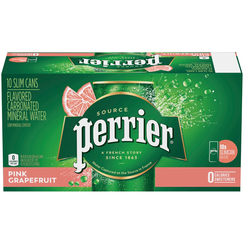 With natural pink grapefruit flavor and other natural flavors. Low mineral content. 0 calories per can. Captured at source. Same bubbles. New body. Enjoy refreshingly unique Perrier on-the-go in a sexy new slim can. Also available in Original and Lime. Contains carbonated mineral water, natural flavors. Contains no juice. Please recycle. Questions? Comments? 1-800-937-2002 or perrier.com. Imported. Product of France.