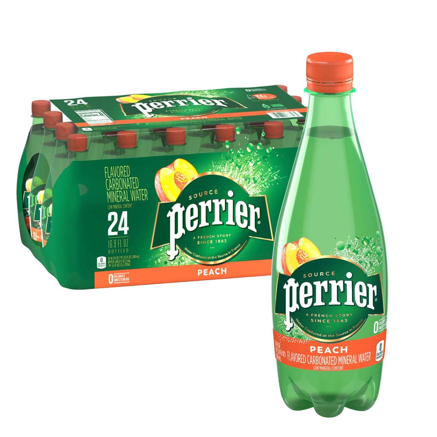 Pack of 24 offers plenty of refreshment; fits in any refrigerator or pantry. Experience its subtle flavor of peach with zero calories and zero sweeteners. Our invigorating bubbles and naturally occurring minerals make for a unique, thirst quenching taste. Perfect for any time of day, and serves as an extraordinary mixer for cocktails. 16.9 ounce/.5 Liter sturdy plastic bottle is the perfect size for on the go.