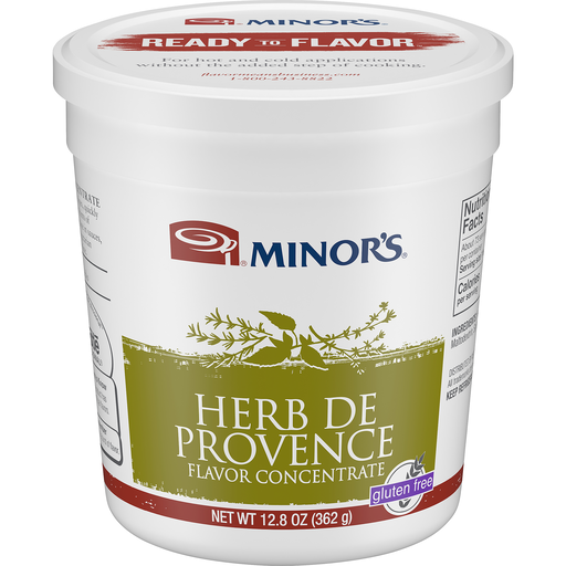Minor's Herb de Provence Flavor Concentrate is a versatile paste with a herbal blend of marjoram, thyme, basil, rosemary and garlic to add authentic European flavor to dishes. Get the results of time-consuming methods such as roasting and caramelizing while saving time and labor in the chopping, seeding and milling of fresh ingredients. With a single flavor concentrate and commonly stocked pantry items, you can create dips, spreads, salad dressings, soups, marinades, sauces and even beverages. Minor's Herb de Provence Flavor Concentrate delivers ease and consistency. Zero mg Cholesterol per serving. Vegetarian. Free of Artificial Flavors. Tested Gluten Free. Refrigerated to preserve freshness. Minor's is trusted by chefs with a rich heritage of bringing flavor to dishes and supporting the chef profession. Minor's continues to pioneer innovation in foodservice as a full provider of flavors and foundations from bases to ready-to-use sauces. Minor's Herb de Provence Flavor Concentrate is a versatile paste with a herbal blend of marjoram, thyme, basil, rosemary and garlic to add authentic European flavor to dishes. Flavorful premium ingredients concentrated in refrigerated pastes. Great in salad dressings, spreads, sauces, soups, entrees and sides. Ready to use - just scoop and add to recipe. Zero mg Cholesterol per serving. Vegetarian. Free of Artificial Flavors. Gluten Free.