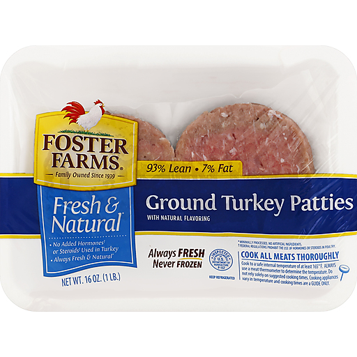 - The product category for Foster Farms, Ground Turkey Patties is Meat.