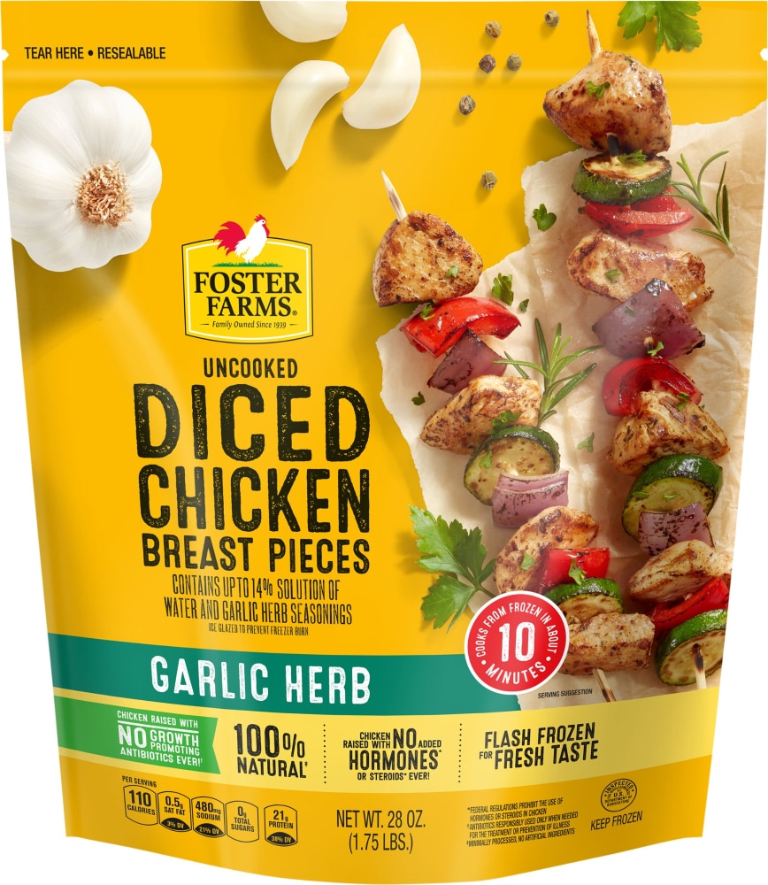 - The manufacturer of Garlic Herb Raw Chicken Breast Pieces, Garlic Herb is Foster Farms.