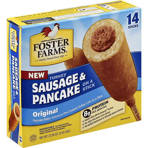 - The manufacturer of Turkey Sausage & Pancake on a Stick, Original is Foster Farms.