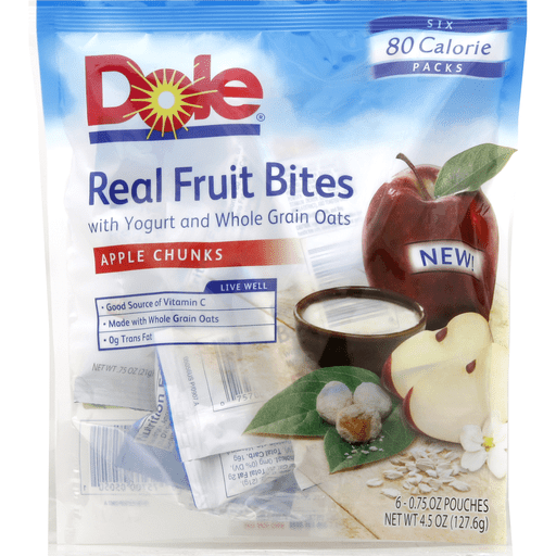 - The manufacturer of Real Fruit Bites with Yogurt and Whole Grain Oats Apple Chunks is Dole.