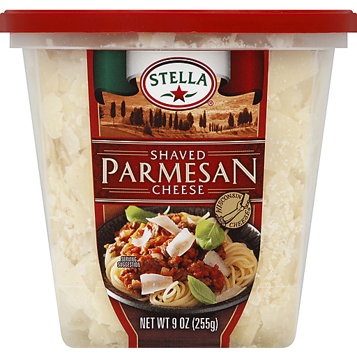 - The manufacturer of Shaved Parmesan Cheese is Stella.