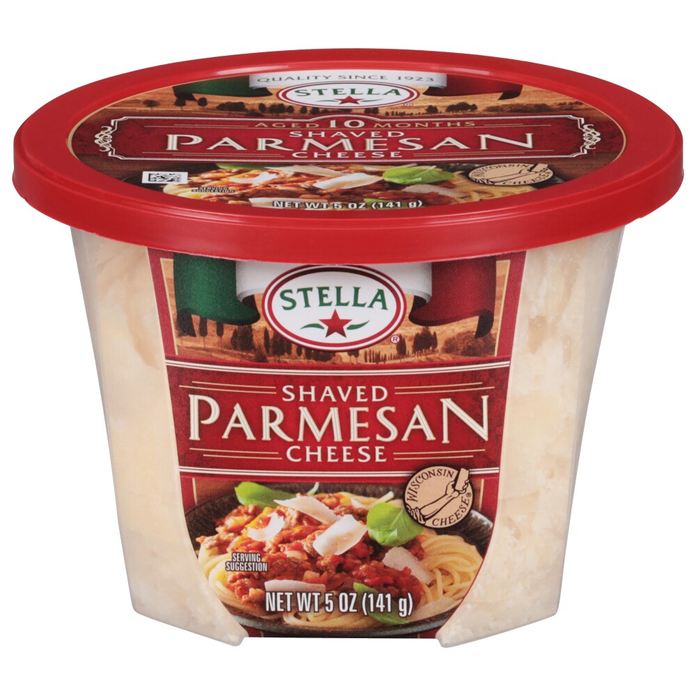 Parmesan is known as the “King of Italian Cheeses” and is one of that country’s most popular fine cheeses. Stella® Parmesan Cheese is a domestically produced version of this classic that features the same subtle, slightly nutty flavor and hard texture. Over ten months of aging gives Stella® Parmesan Cheese its distinctive flavor that perfectly complements and enhances dishes like pasta, salads and grilled vegetables. Package includes 5 oz of Stella® Shaved Parmesan CheeseAged over 10 monthsMade in WisconsinAdds a zesty accent on soups, salads, casseroles and pastaShaved for easy kitchen application.