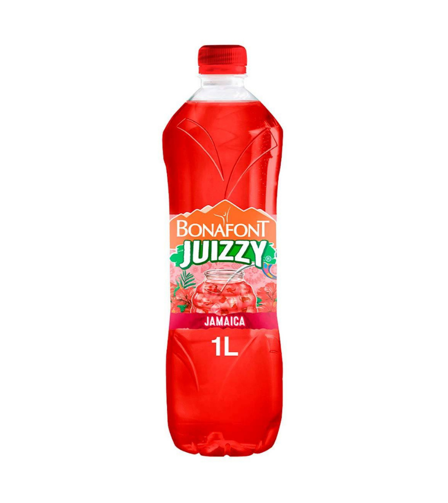 Agua Bonafont, Polidextrosa (Fibra Dietetica), Acido Citrico, Consentrado Bonafont Juizzy Jamaica (Acesulfame K (4,3Mg/100Ml), Stevia (0,8Mg/100Ml) Y Sucralosa(6,6Mg/100Ml), Ácido Tartárico, Extracto De Jamaica (0,04%), Colorantes (Rojo 40, Caramelo Clase Iv Y Azul 1) Y Ácido Málico.