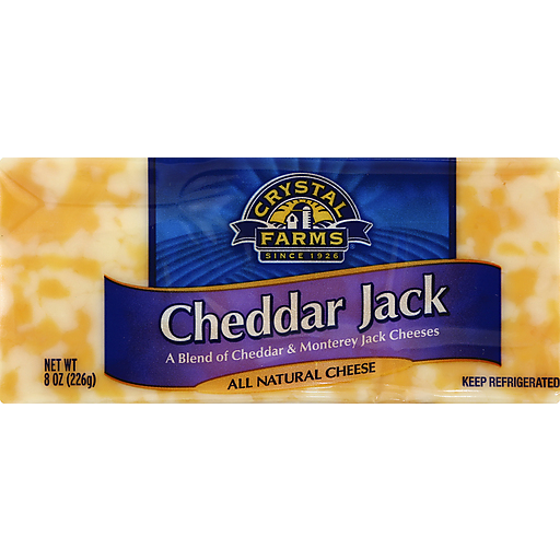 - The manufacturer of Cheddar Jack a Blend of Monterey Jack Natural Cheese, Cheddar Jack is Crystal Farms.