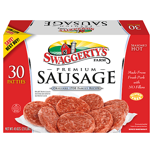 - The manufacturer of Sausage Premium Patties, Sausage is Swaggerty's Farm.