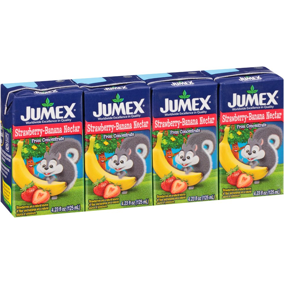 Jumex Strawberry-Banana Nectar. Made from the finest fruits in Mexico. Ideal for lunch or snack beverage for kids. Jumex Fruit Nectars are made from the finest fruits in Mexico. Naturally free of saturated fat, transfat & cholesterol. Low sodium.