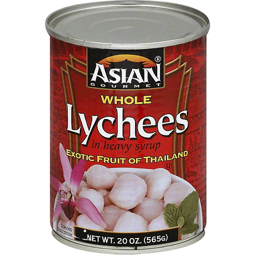 - The product category for Asian Gourmet, Whole Lychees in Heavy Syrup is Lychees.
