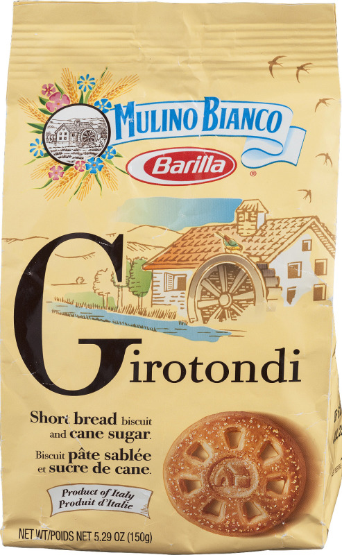- The product category for Mulino Bianco, Barilla, Girotondi Short Bread Biscuit and Cane Sugar is Cookies.