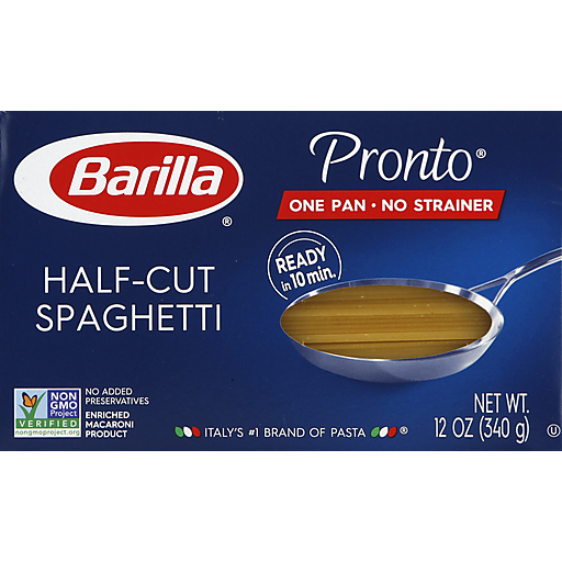 - The manufacturer of Enriched Macaroni Product, Half-Cut Spaghetti is Barilla.