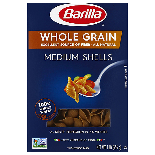 - The manufacturer of Whole Grain Wheat Pasta, Medium Shells is Barilla.