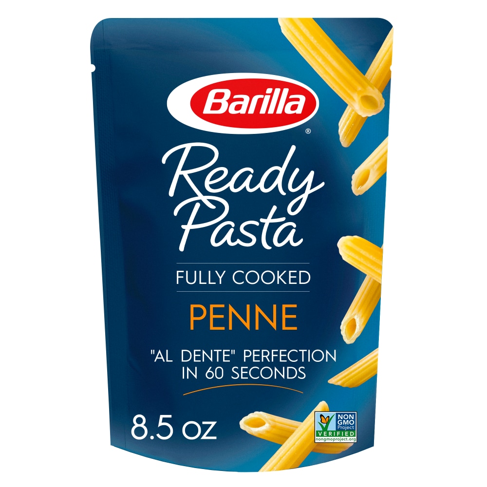 BARILLA Ready Pasta Penne is a fully cooked pasta that's ready in the microwave in just 60 seconds. Made with 3 simple ingredients—a dash of extra virgin olive oil, a pinch of sea salt and authentic BARILLA pasta—Ready Pasta has no preservatives and is non-GMO certified. Simply heat the pouch in the microwave then add your favorite pasta sauce or toppings for a quick and delicious dish.