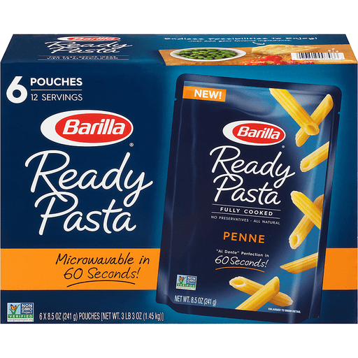 Perfect pasta in 60 seconds!Barilla Ready Pasta is a delicious, fully cooked pasta that is ready in just 60 seconds. Simply heat the pouch in the microwave then top with your favorite ingredients for a delicious dish in minutes. Barilla Ready Pasta has no preservatives and is made with 3 simple ingredients - a dash of extra virgin olive oil, a pinch of sea salt & authentic Barilla pasta - ready for you to add your toppings. And because it is sealed for freshness, Barilla Ready Pasta has the delicious taste & perfectly al dente texture you can always expect from Italy’s #1 brand of pasta.