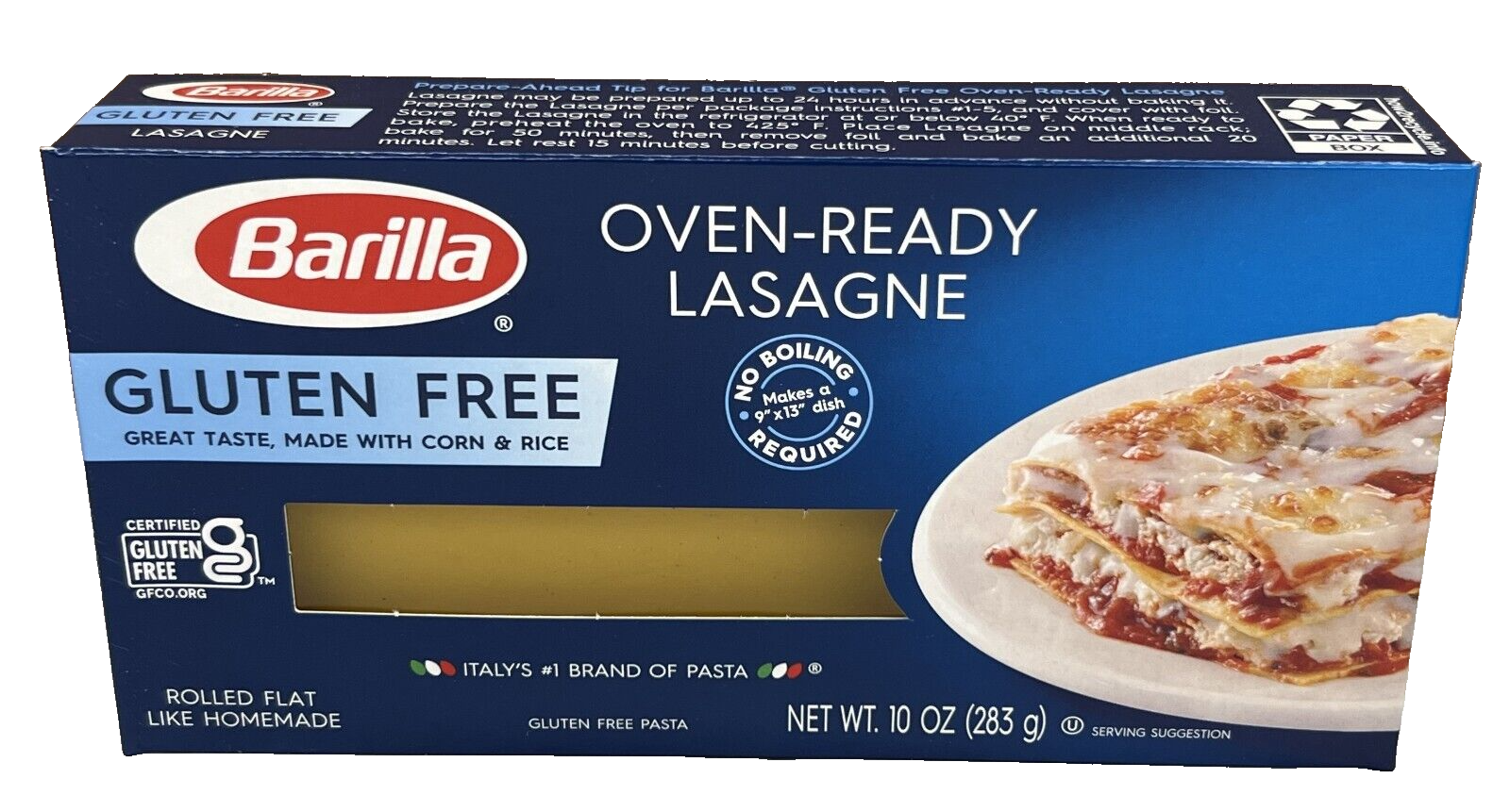 - The manufacturer of Gluten Free Pasta, Oven-Ready Lasagne is Barilla.
